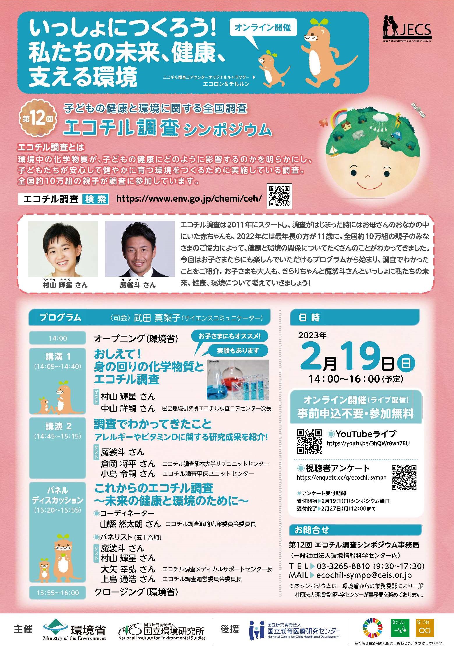 なお、過去のシンポジウムは、環境省のエコチル調査ホームページやYoutubeの環境省チャンネルでも見ることができます。